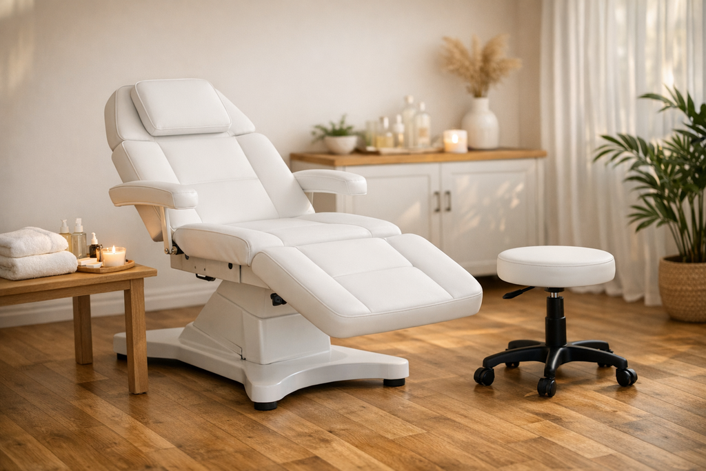 - Hochwertige, multifunktionale Liege – ideal für Kosmetik, Massage, Fußpflege, Tattoo, Wellness