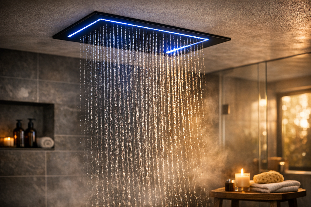 Gönnen Sie sich Wellness pur in Ihrem eigenen Badezimmer: Der Regenduschkopf mit extragroßer Fläche (35,6x50,8 cm) und modernem, mattschwarzem Design verwandelt Ihre Dusche in eine stylische, entspannende Regenoase. Durch die breite Wasserverteilung sorgt diese Kopfbrause für ein einzigartig angenehmes Duschgefühl, das sonst nur in Luxus-Hotels zu finden ist – und das zu einem unschlagbaren Lagerverkaufs-Preis. Dank hochwertiger Verarbeitung, leicht zu reinigender Oberfläche und langlebiger Materialien ist diese Regendusche optimal für moderne Bäder und Renovierungsprojekte. Sie erhalten ein Markenprodukt direkt aus unserem Lager – ohne teuren Zwischenhandel. Das heißt für Sie: riesige Ersparnis! Nutzen Sie die Gelegenheit, bevor das Kontingent erschöpft ist.