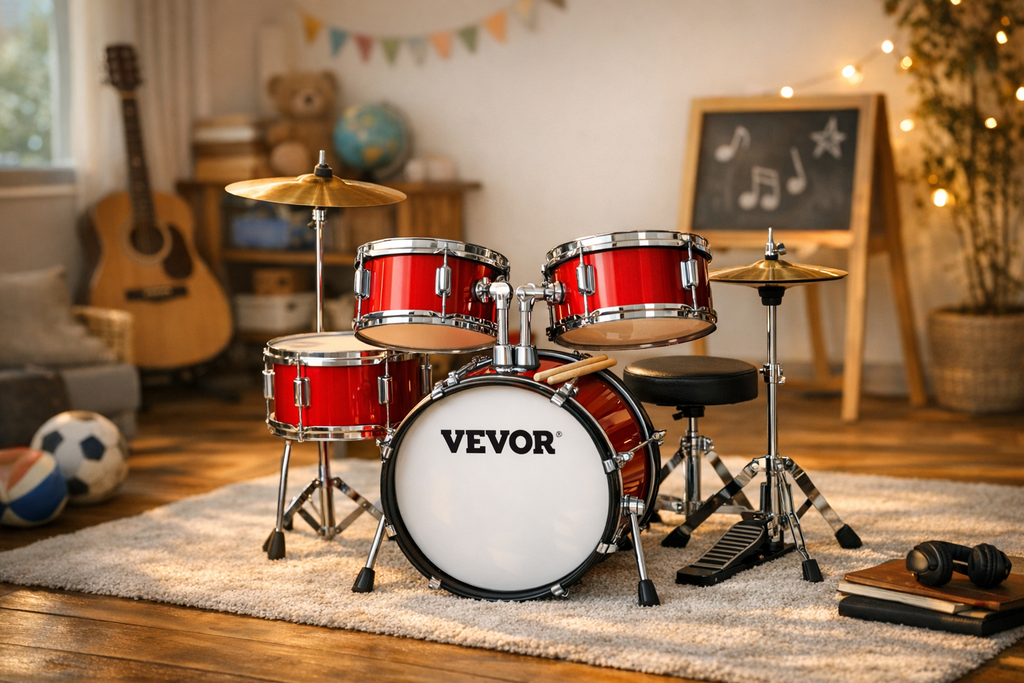 Das Set besteht aus einer robusten Kick-Trommel (ca. 35,6 cm), zwei kompatiblen Tom-Toms sowie passendem Zubehör inklusive Drumsticks. Die hochwertige Verarbeitung garantiert langanhaltenden Spielspaß. Optisch überzeugt das Modell durch das knallige Rot – ein echter Hingucker in jedem Musikraum oder Wohnzimmer. Durch die einfache Montage ist das Schlagzeug-Set auch ideal für Kinder und Anfänger geeignet. Ideales Einstiegspaket für junge Talente und alle, die das Trommeln erkunden wollen. Ob als Weihnachts-, Geburtstagsgeschenk oder spontane Überraschung – dieses preiswerte Angebot sollten Sie nicht verpassen.