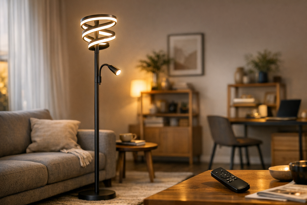Unsere Stehlampe überzeugt mit einem leistungsstarken 20W-LED-Modul, das für eine helle, angenehme Beleuchtung sorgt. Sie eignet sich ideal als Akzentbeleuchtung im Wohnzimmer, als praktische Leseleuchte im Schlafzimmer oder als stilvolles Lichtobjekt im Büro. Die dezente, schwarze Oberfläche ist pflegeleicht und harmoniert mit vielen Einrichtungsstilen. Der stabile Standfuß sorgt für einen sicheren Halt, während das verzögerungsfreie Einschalten und die Langlebigkeit des Leuchtmittels den Alltag erleichtern. Sie kaufen ein Produkt, das auf Komfort, Langlebigkeit und Modernität ausgelegt ist – und das zum exklusiven Lagerverkaufs-Preis im Raum Ingolstadt!