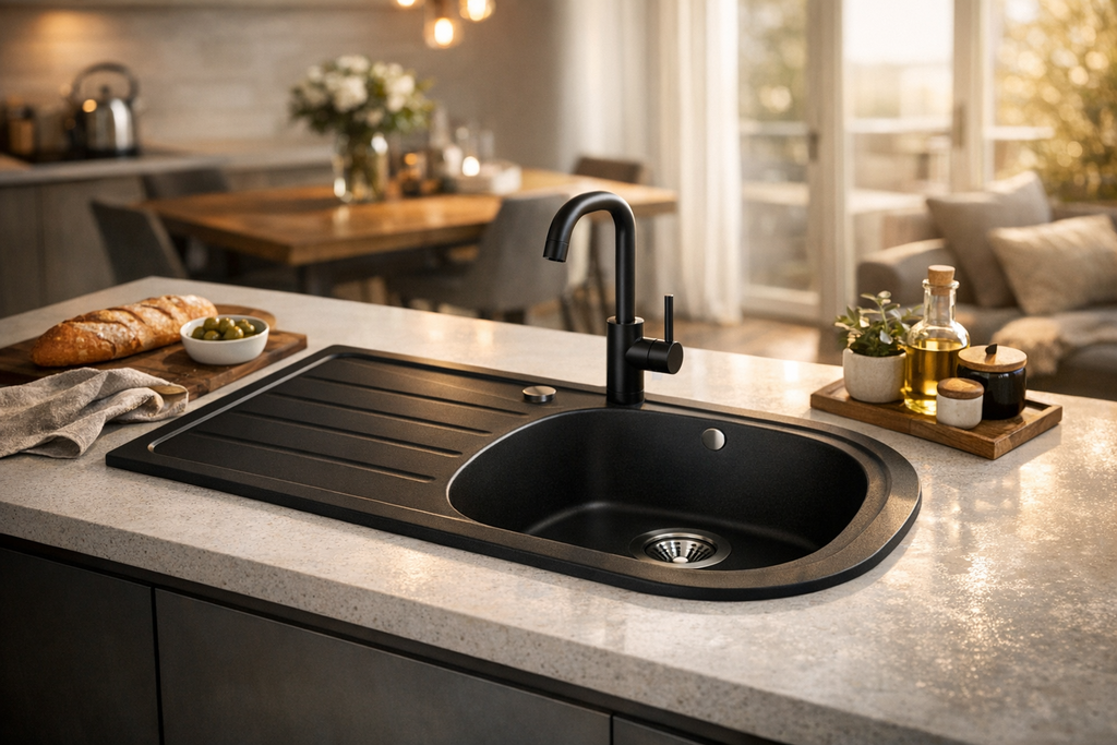 Schwarze Küchenspüle 78x50 cm – Eleganz trifft Funktion