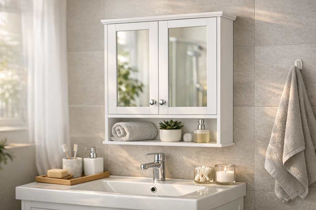 - Vielseitig einsetzbar: ideal als klassischer Badspiegelschrank oder zusätzlicher Stauraum im Gäste-WC